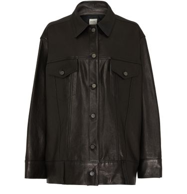 Khaite's Grizzo leather jacket showcases a short, long-sleeved silhouette with a front buttoned closure for effortless style. Its casual design features patch and flap pockets, while the appliquéd logo at the back label adds a distinctive touch. The silver finish elevates this jacket, making it a must-have staple.