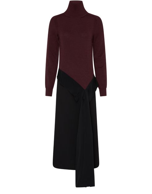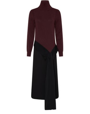 Victoria Beckham's high neck tie detail dress is a stunning maxi dress crafted from soft knitted fabric. This long-sleeved design showcases visible stitching and cuffed sleeves, offering a sophisticated silhouette. Its high-neck detail adds elegance, making it the perfect choice for both casual outings and special occasions.
