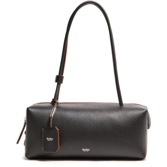 Unveil the sophistication of Max Mara's Holdall string shoulder bag, crafted from smooth leather. This exquisite piece features visible stitching, a zipper closure, and a front logo. Its double handles add to the functional elegance, making it an ideal choice for those who appreciate timeless style and exceptional craftsmanship.