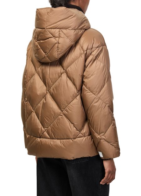 Reveal Max Mara's hooded puffer jacket, a short silhouette with a modern edge. The zipper closure and welt pockets add practical flair, while the diamond pattern and padded texture create a striking look. Perfect for versatile styling, this piece transitions seamlessly from day to night.