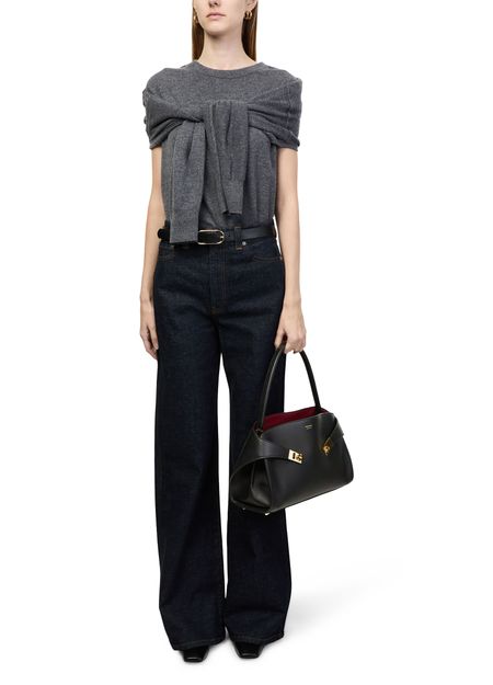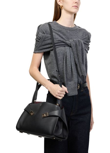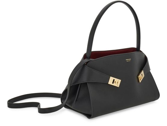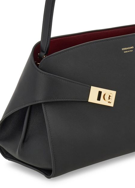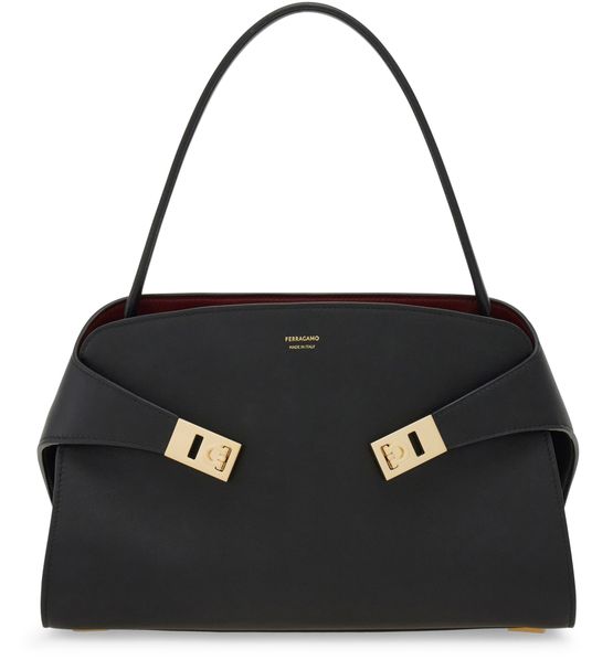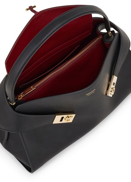 The Hug Soft shoulder bag features the distinctive enveloping shape of the Hug in a deconstructed version. Made of calfskin it features a single handle for a softer silhouette on the front panel, which is decorated with golden Gancini buckles. Closed with an internal flap equipped with magnets and a practical T-bar, this version features a contrasting lining for a refined color block effect. The...