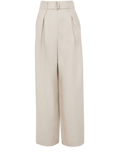 Description : belt loops, back darts, hook and concealed zipper closure, visible stitching, gold finish, pleats on the front, formal pants, back pocket, welt pockets, side pockets.