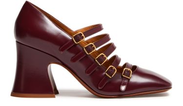 Reimagine Chloe's Janis pumps with a modern twist. Crafted from glossed leather, these pumps boast a chic square toe and a comfortable block heel. The buckled strap closure ensures a secure fit, while the gold-finished logo in gold letters adds a touch of elegance. A logo-printed insole completes the look.