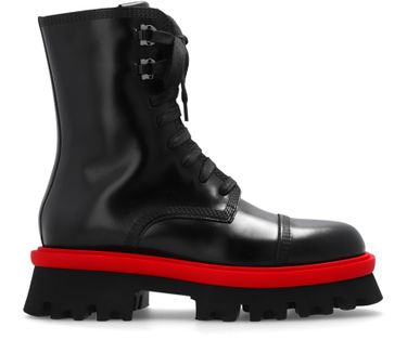 Ferragamo's Kira ankle boots feature a high-top upper with ankle lacing for a secure fit. The round toe and closed design provide comfort, while the notched sole and low block heel offer stability. The boots also showcase a silver finish and metallic logo details on the tongue and side for a touch of luxury.