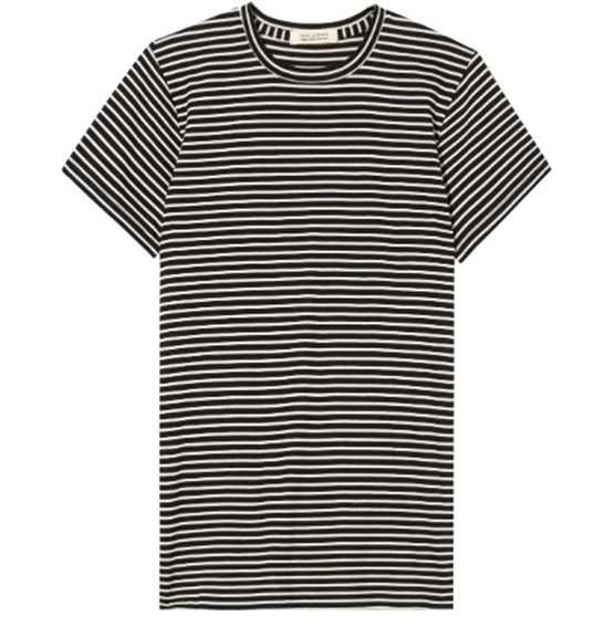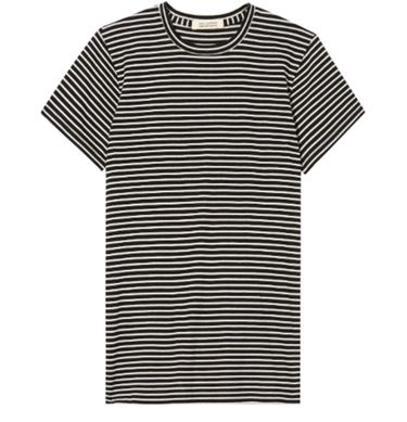 Reveal Nili Lotan's striped top, featuring a refined crew neck and short sleeves for a modern silhouette. The crisp striped print adds a dynamic touch, making this piece effortlessly versatile for both casual and elevated looks. Style it with tailored pants or denim for a polished finish.