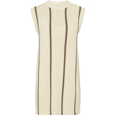 Anine Bing's Lanie dress is a sleeveless mini dress crafted from soft knitted fabric. It features a classic crew neck design, offering a timeless silhouette. The logo at the back label adds a subtle touch of branding, making it a stylish choice for casual or dressed-up occasions.