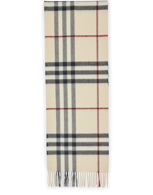 Stay stylish and warm with Large Checked Scarf. This iconic accessory features a classic checked pattern and fringed edges, adding a touch of elegance to any outfit. The appliquéd logo adds a signature touch, while the fringe details offer a timeless look. Perfect for adding a touch of sophistication to your winter wardrobe.