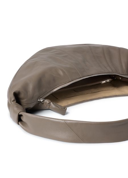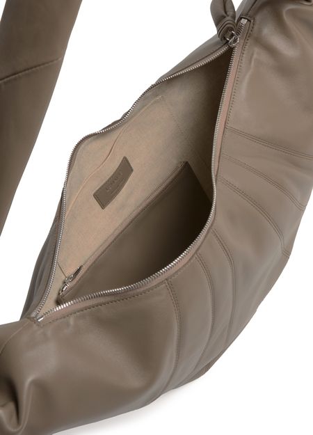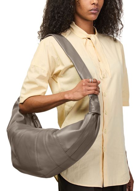 Reveal Lemaire's hobo bag, crafted from smooth leather with a padded texture for a refined touch. The single handle and zipper closure offer effortless functionality, while visible stitching highlights the brand’s attention to detail. A modern shoulder silhouette designed for everyday sophistication.