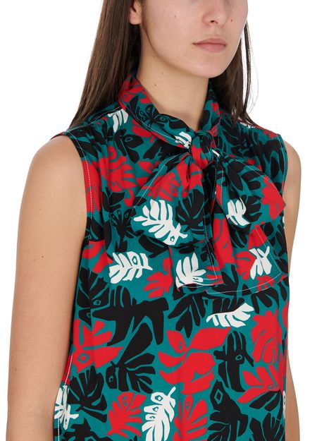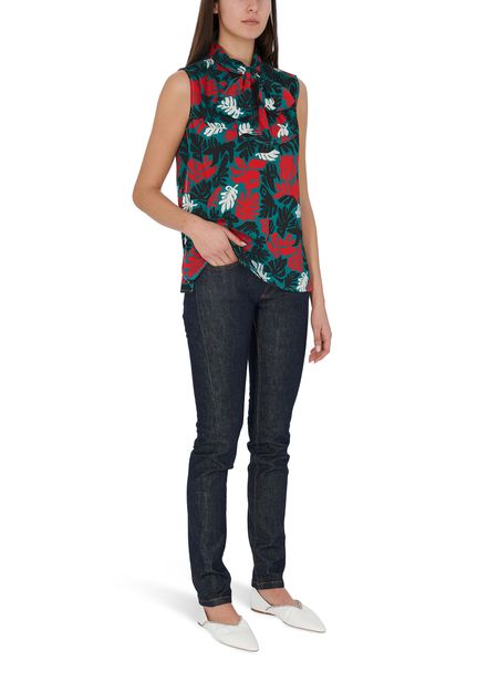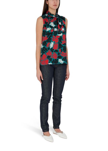Fashion house Marni customises a smart outfit with a romantic touch. The sleeveless Lavalière top incorporates the knot of the same name in a fluid shape.