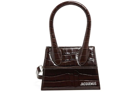Jacquemus's Le Chiquito Moyen bag captivates with its magnetic flap closure and striking silver finish. Designed with double handles for hand carrying or a thin strap for crossbody wear, it showcases a metallic logo on the front and visible topstitching, making it a chic statement piece for any occasion.