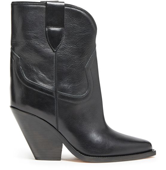 Isabel Marant's Leyane ankle boots showcase a stylish high-top upper with a pointed toe, perfect for elevating any outfit. The medium heel offers comfort, while the pull tabs adds a modern touch. Visible stitching enhances the design, making these closed boots a must-have for the fashion-forward individual.