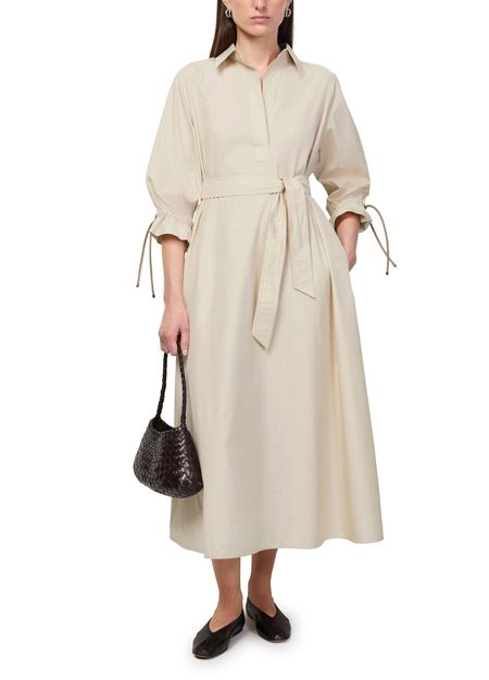 Reveal Max Mara's linen maxi skirt, a refined piece featuring a V-neck and three-quarter sleeves. The tailored collar and belt loops add a sophisticated touch, while the flowing silhouette ensures effortless elegance. Perfect for versatile styling, this skirt transitions seamlessly from day to evening.