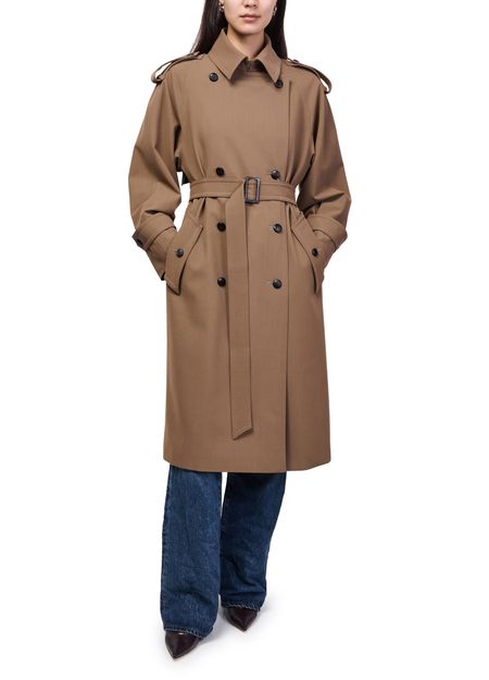 Reveal Max Mara's longline belted coat, a knee-length silhouette with a refined collar and double-breasted button fastening. Side and front pockets add practical flair, while the tailored fit and classic trench inspiration ensure effortless sophistication for both day and evening ensembles.