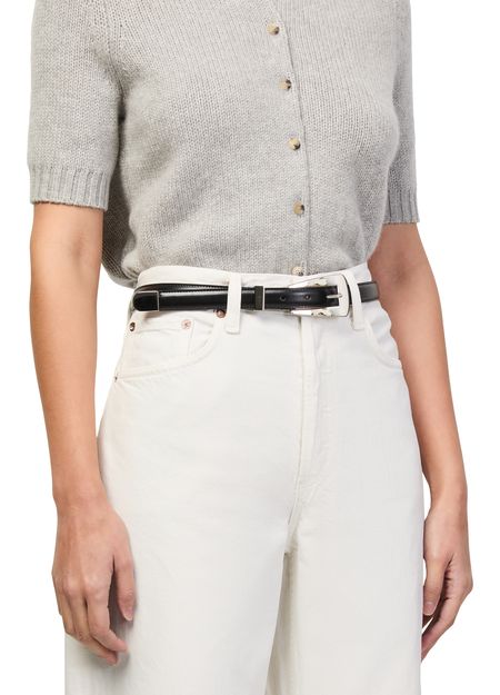 Reveal Khaite's Lucca belt 25 MM, crafted from smooth leather with a refined adjustable clasp. The silver-tone hardware adds a polished accent, while its versatile design seamlessly elevates both casual and formal looks. A modern essential, this piece brings understated sophistication to any wardrobe.