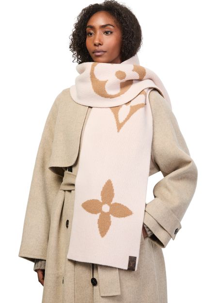 The warmth of wool combines with a bold new pattern to make the LV Medallion Knit scarf a stylish, cozy companion for the cold season. Oversized versions of the House’s iconic LV Initials and Monogram Flowers give it an instantly recognizable signature. A discreet canvas LV patch adds a subtle finishing touch.