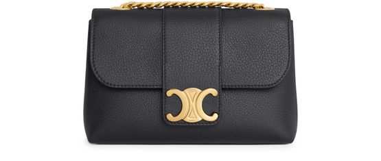Celine's Mini Celine's Victoire in supple calfskin is a stylish companion for any occasion. With its elegant cross-body and shoulder carry options, it features a secure Triomphe snap button closure. The spacious main compartment and inner flat pocket keep essentials organized, while the chic chain adds a touch of sophistication.