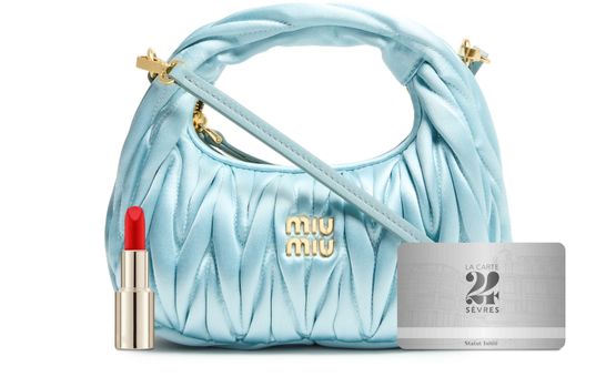 Introducing Miu Miu's mini bag, a masterpiece of modern elegance. Crafted from satin-finish leather, it features the iconic quilted herringbone detail and metallic logo. The detachable thin strap and single handle offer versatile styling, while the zipper closure ensures secure storage. Elevate your ensemble with this chic accessory.