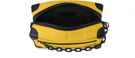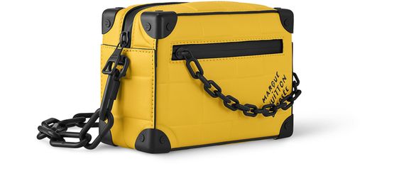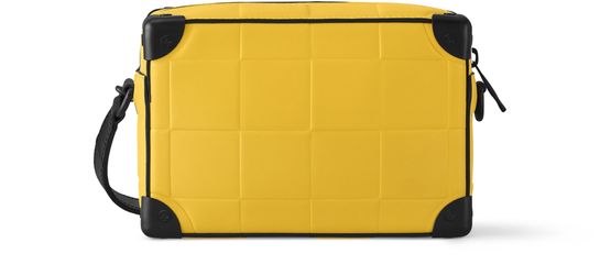 Pharrell Williams crafts the Mini Soft Trunk from Damier Scuba calf leather, an explosion of neoprene-yellow that evokes the gear worn by fishermen and scuba divers. The calfskin, embossed with the Damier pattern, is backed with a neoprene layer to replicate the padded feel of a material traditionally relegated to the nautical world.