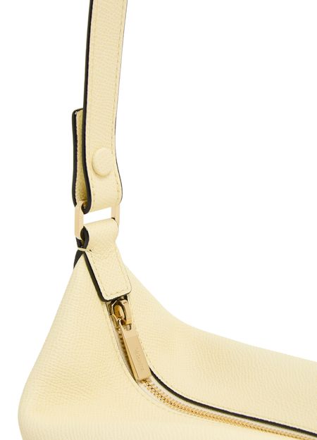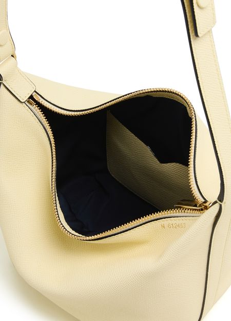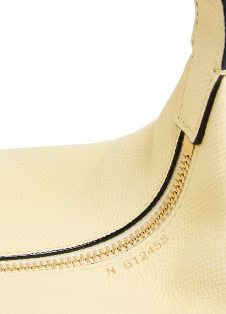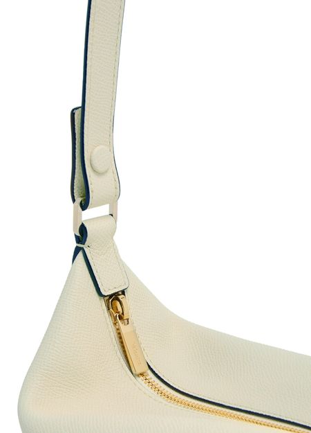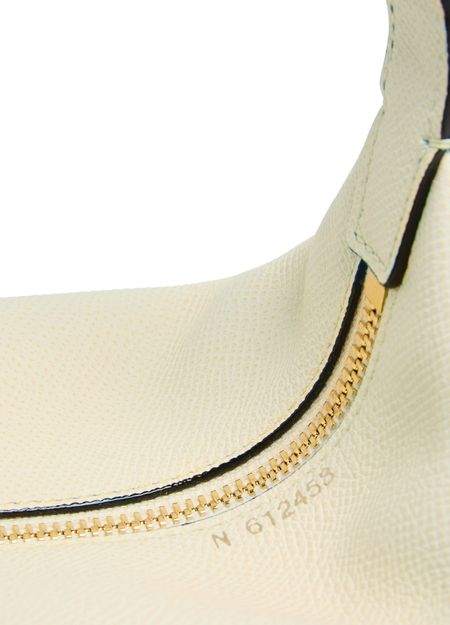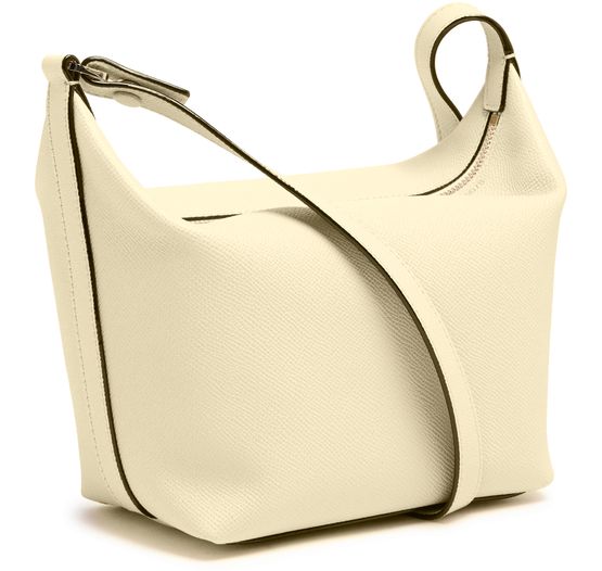 Unveil Valextra's Mochi mini bag - This sophisticated piece features a zipper closure, single compartment, and gold finish. Designed with a single handle and interior patch pockets, it offers versatility with its adjustable thin strap for crossbody wear. The visible topstitching adds a touch of elegance.