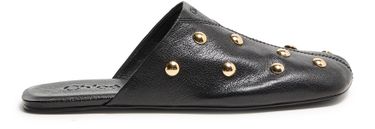 Reveal Chloe's mules with decorative touches, crafted from grained leather and finished with a low, flat heel. The closed square toe and visible blanket stitching add a refined edge, while gold-finish studded details and a leather insole ensure both comfort and standout appeal.