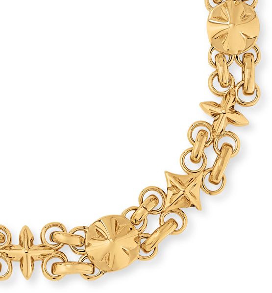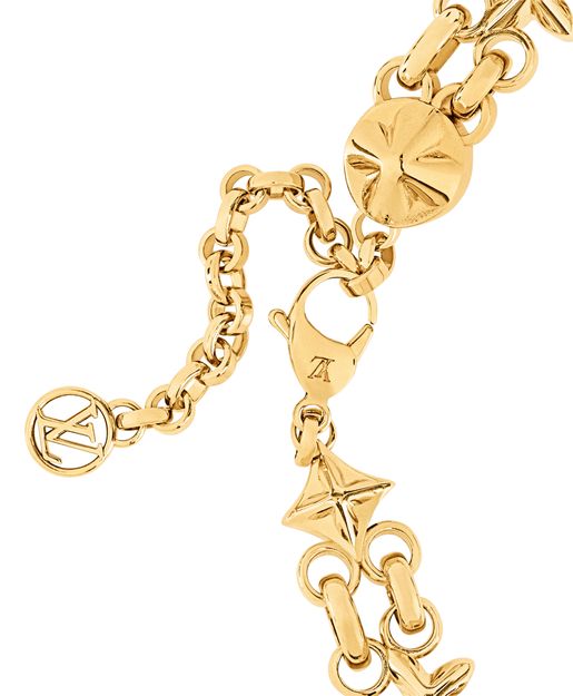 The My Flower Chain necklace presents a chunky take on beloved House signatures. Multiple variations of the Monogram Flower appear on this contemporary accessory, reworked as statement chain links. An LV Circle charm is suspended from the end of the adjustable chain, in a further nod to the House.