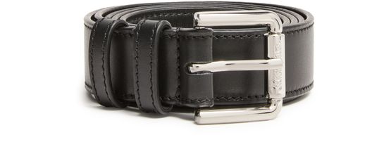 • Description : Tie belt, smooth leather, adjustable clasp, brand's signature buckle, gold-tone hardware.
