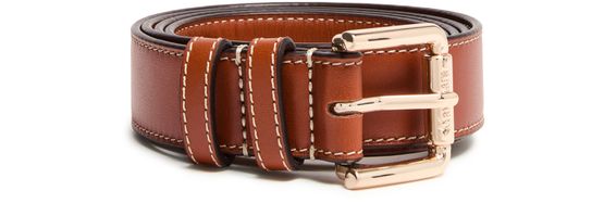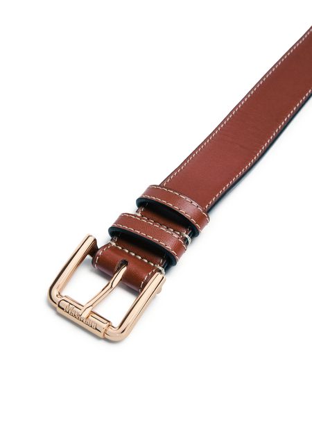 Reveal Max Mara's New Buckle belt, crafted in smooth leather with an adjustable clasp and the brand's signature gold-tone hardware. This tie belt epitomizes modern elegance with its sophisticated design.