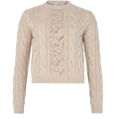 Introducing Max Mara's Nostoc round-neck sweater, a masterpiece of modern knitwear. This regular fit piece features a round neck and long, cuffed sleeves, offering a sleek silhouette. Crafted from marled material with ribbed texture and lace details, it effortlessly elevates any ensemble, perfect for versatile styling.