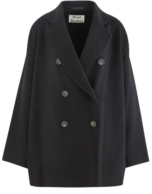 This double-breasted woollen jacket is a design from Acne Studios. It features long sleeves, a V-neck and two rows of three buttons.
