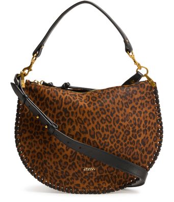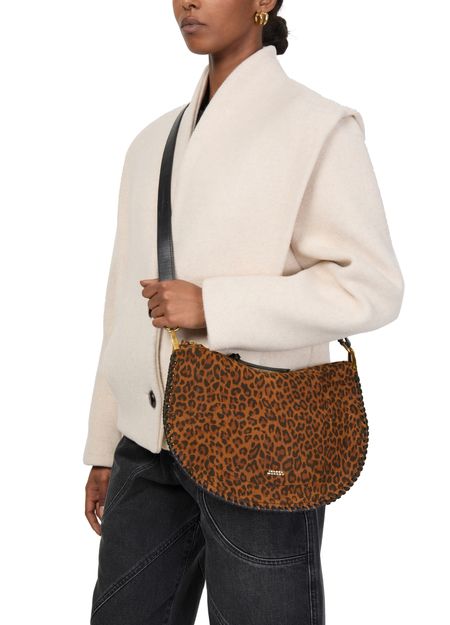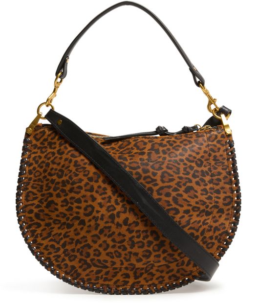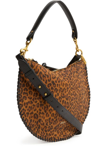 Unveil Isabel Marant's Oskan soft shoulder bag. This chic accessory boasts a sleek leopard print and is designed with a single handle for a sophisticated look. The adjustable, detachable strap adds versatility, while the gold finish and visible topstitching highlight exquisite craftsmanship, offering functional elegance with its spacious compartment and interior card slots.