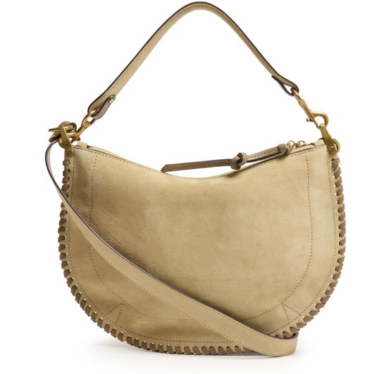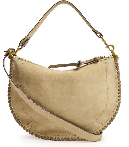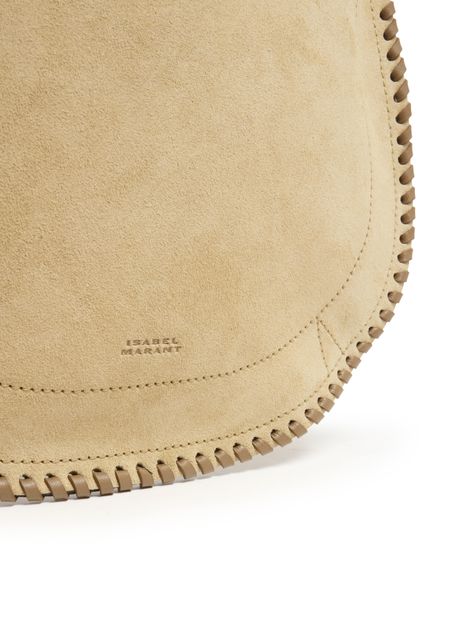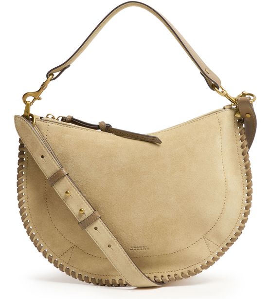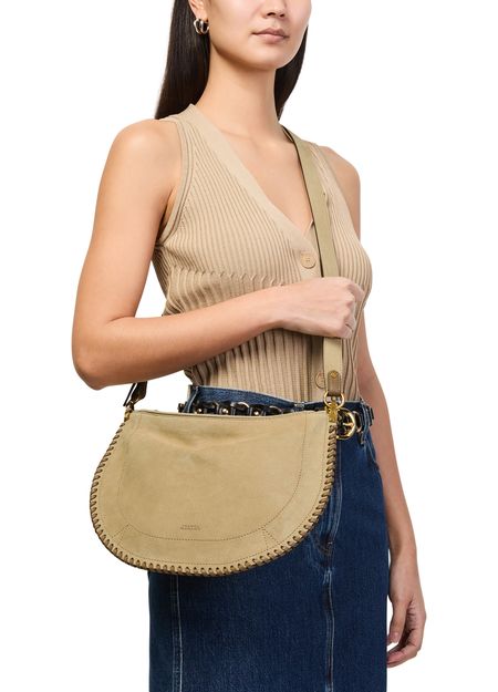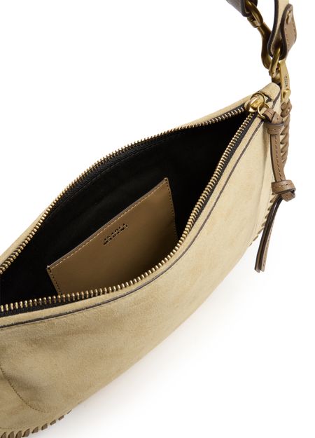 Reveal Isabel Marant's Oskan Soft Zip shoulder bag in suede with braided edges, crafted with a single handle and thin, adjustable strap for versatile wear. Gold-finish hardware, visible topstitching, and an embossed logo add refined detail, while a secure zipper closure and interior pocket ensure everyday practicality.