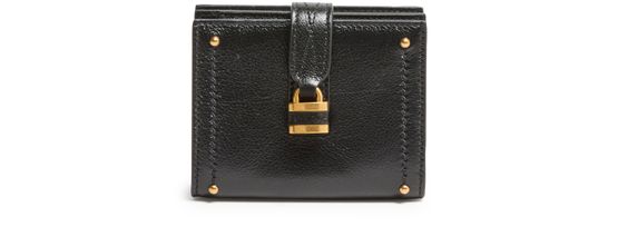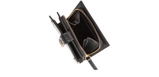 • Description : Wallets, engraved logo, front logo, grained leather, gold clasp, zippered interior pocket, interior patch pockets, contrast stitching, gold finish.