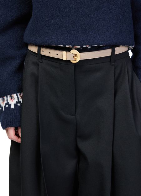 Reveal Loewe's Pebble belt in smooth calfskin, crafted from supple smooth leather with an adjustable clasp for a tailored fit. The gold-tone hardware and engraved logo add refined detail, while its waist-worn design ensures versatile styling for both casual and sophisticated ensembles.