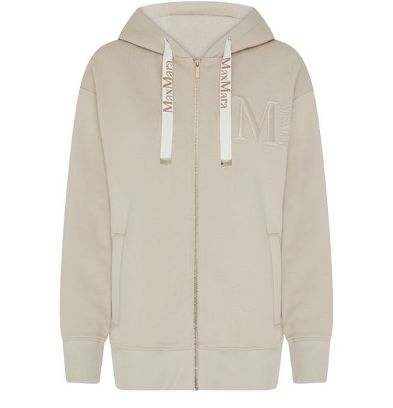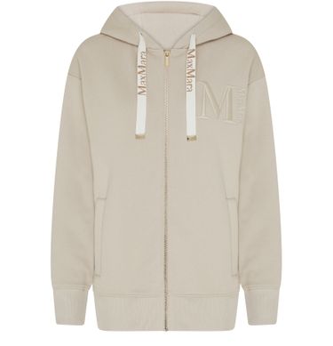 S Max Mara's Pecos zipped hoodie combines effortless style with practicality. Its long, relaxed silhouette features a secure zipper closure and an embroidered chest logo for a touch of elegance. The hood offers cozy warmth, while side welt pockets provide convenient storage, making it a perfect companion for any casual outing.