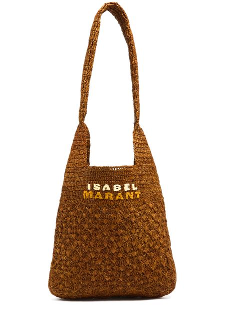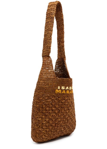 Isabel Marant's Praia shoulder bag showcases a wide strap for effortless style. Adorned with an embroidered logo and intricate details, it features a single compartment for essentials. The single handle allows it to be worn on the shoulder, making it a perfect blend of functionality and chic elegance for any occasion.