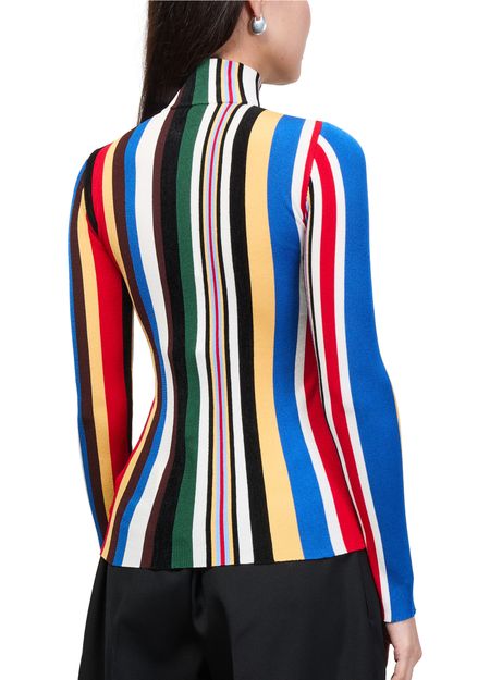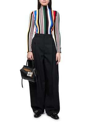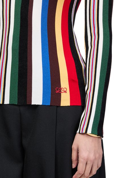 Reveal Loewe's printed long-sleeved top, featuring a refined high-neck and elegant striped print. The sleek silhouette and elongated sleeves offer a contemporary edge, making this piece a standout for versatile styling. Pair it effortlessly with tailored pants or denim for a polished, modern look.