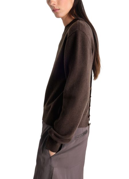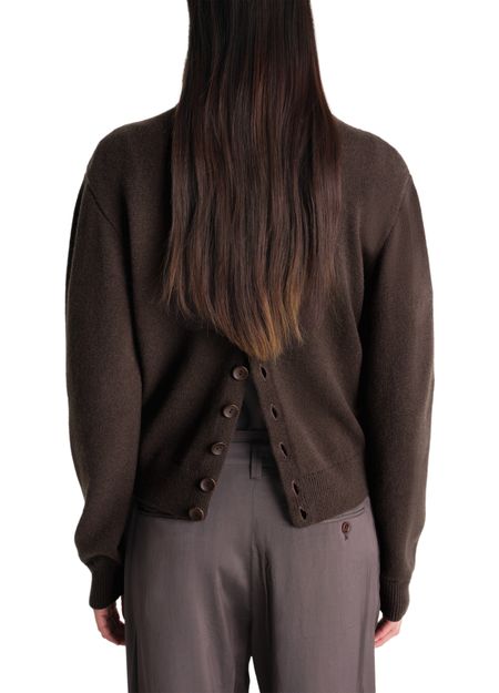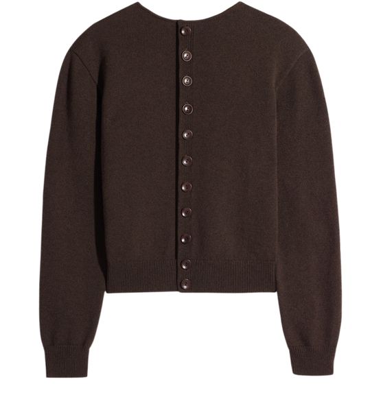 Reveal Lemaire's reversible buttoned sweater, featuring a refined round neck and long sleeves for a sleek silhouette. The button fastening adds a modern touch, while its reversible design offers versatile styling options—perfect for elevating your wardrobe from day to night with effortless sophistication.