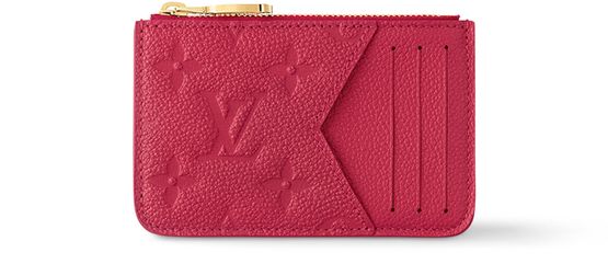 The Romy card holder in supple, grained Monogram Empreinte leather is an elegant and practical accessory which can hold more than just cards. In addition to three card slots, its design features a zipped coin pocket with an LV Circle zip pull in gold-tone metal and a V-shaped flat pocket for tickets or receipts.