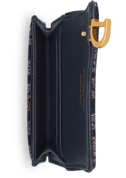 Description : Main composition: cotton, calfskin and technical fabric, calfskin and technical fabric lining, front D stirrup, one gusset compartment, two card slots, two slip pockets.