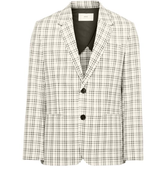 Ami's Semi lined jacket showcases a stylish single-breasted design with a notched collar and two-button closure. Its long-sleeved silhouette features an all-over checked pattern, complemented by practical patch pockets. Perfect for layering, this jacket effortlessly combines sophistication and functionality, making it an essential addition to any wardrobe.