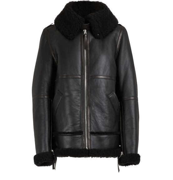 Acne Studios presents a new interpretation of a timeless functional piece with this shearling jacket. The model's aviator shape fits in perfectly with other androgynous designs offered by the brand. Acne Studios' signature look is featured in large zippers on the sleeves and two rows of fur at the base. Playfully layer this jacket with different lengths to get the Parisian show's style.