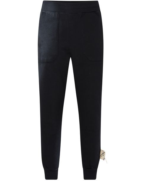 • Description : Elasticated-waist pants, carrot cut, legs narrow towards the end, side pockets, back pocket, appliquéd logo, brand's monogram, topstitched pleats.