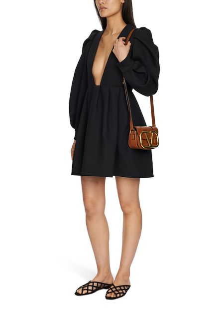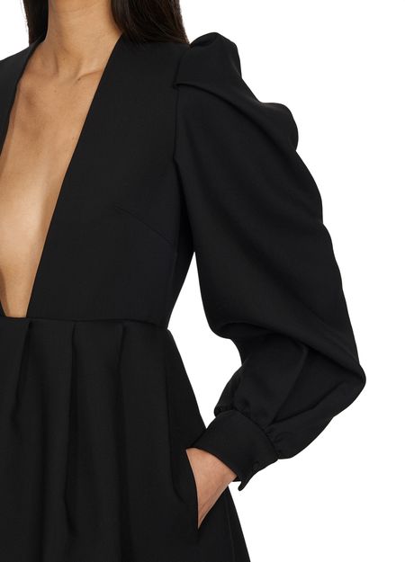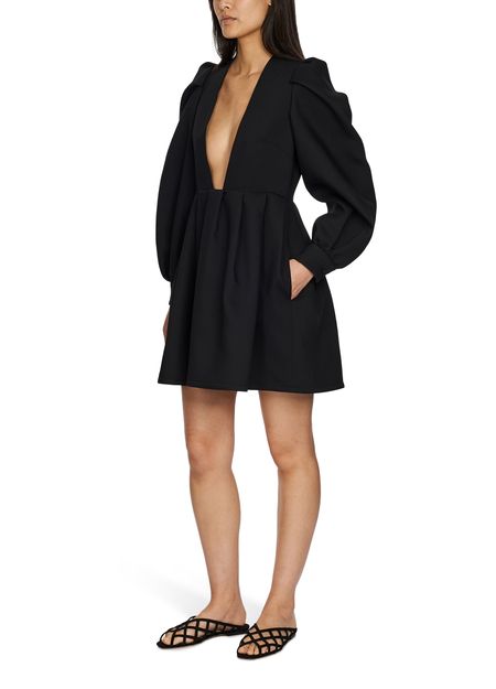 Behind the puff sleeves and highly voluminous skirt, this mini dress by Valentino allows your figure to shine through with its plunging neckline.