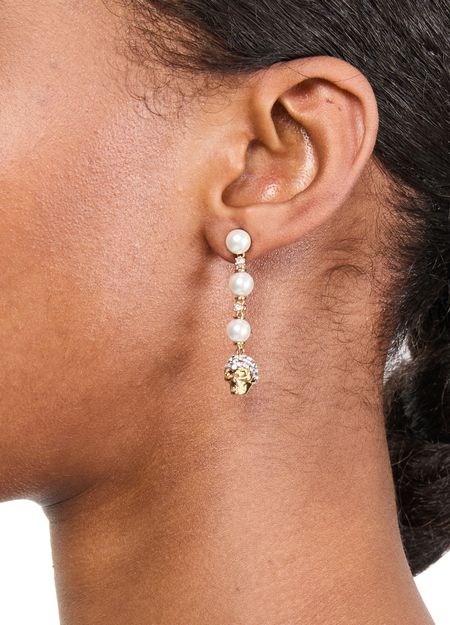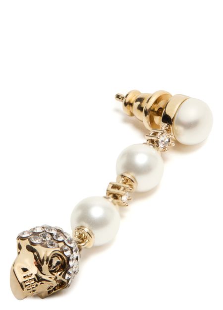 Introducing Alexander McQueen's Skull and pearl earrings, a modern marvel with exquisite bead and pearl details. These single earrings are adorned with a luxurious gold finish and feature a post-back closure, ensuring both security and style. Elevate your collection with this stunning piece.