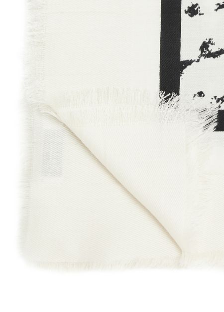 • Description : oversized style, logo print along the edge, front logo, silk scarves, all-over print, raw edges.