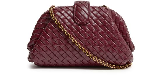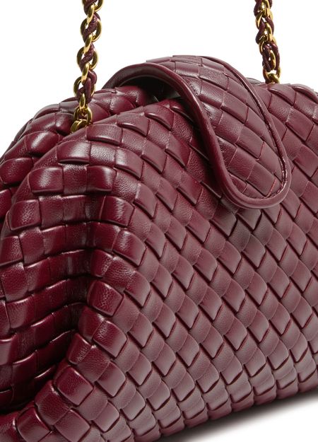Reveal Bottega Veneta's intrecciato clutch, a statement piece crafted with the iconic weaving technique. The gold finish and padded texture add a refined touch, while the chain strap and magnetic closure ensure both style and practicality. Experience the elegance of a single-compartment leather interior.