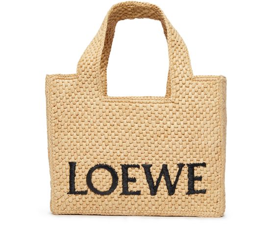 The Loewe Small tote bag with logo is a chic and versatile mini bag that can be worn in the hand. It features two handles for easy carrying and a front logo for a touch of sophistication. This shopper/tote bag is perfect for adding a stylish flair to any outfit.