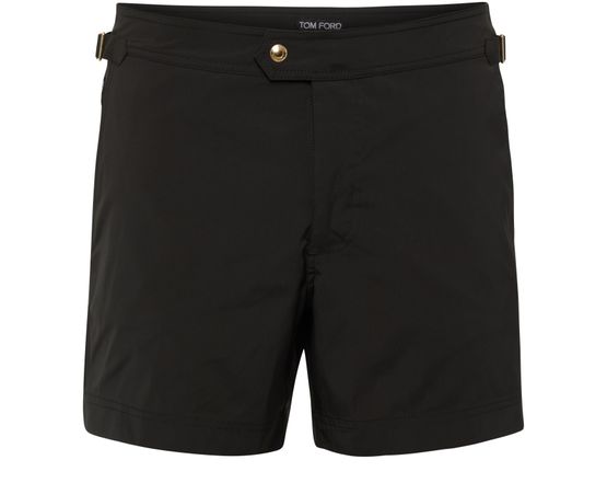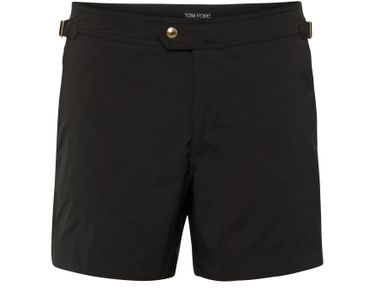 Explore the timeless appeal of Tom Ford's mid-length swim shorts. The straight cut design offers a classic silhouette, while the adjustable waist ensures a comfortable fit. Complete with a button fastening, these swim shorts are a stylish choice for poolside lounging or beach days. Elevate your summer wardrobe with this essential piece.