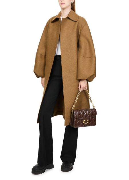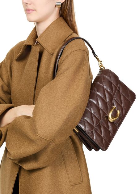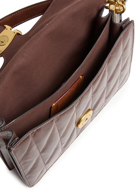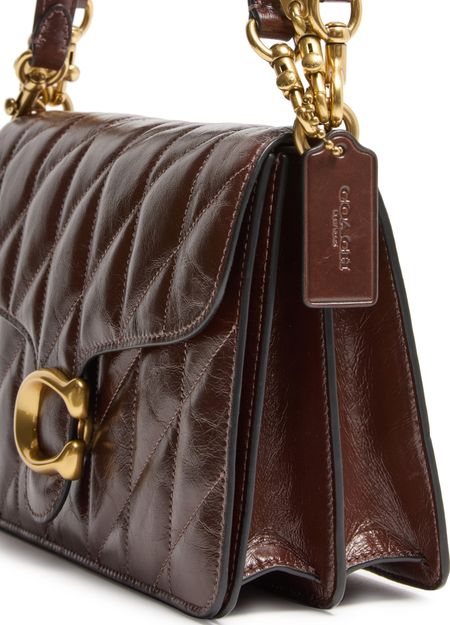 Reimagine Coach's Tabby shoulder bag with its versatile style featuring a magnetic "C" buckle. This crossbody bag showcases a chic chevron quilted leather finish, complemented by a detachable chain strap and a single leather handle.