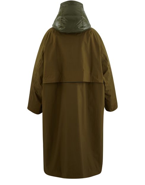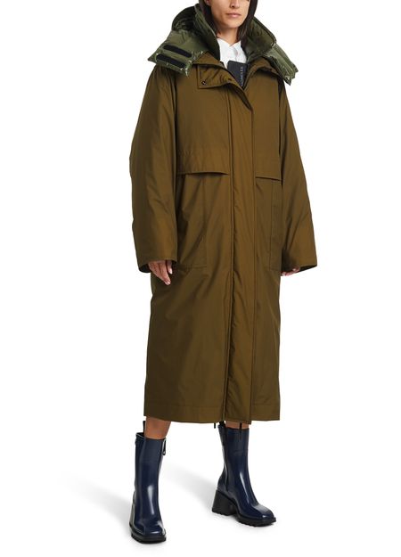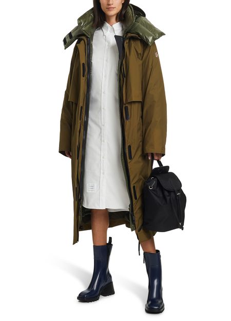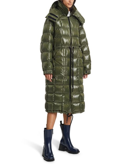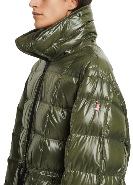 The knee-length Tervela parka is by Moncler Grenoble. This long-sleeved design has a large stand collar.
